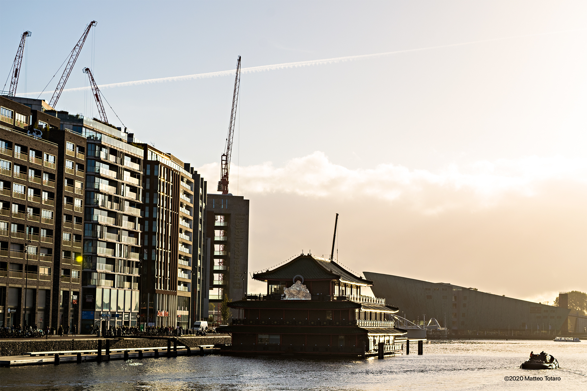 Amsterdam canals in an autumn moodAfter walking for at least 20km we rented two bicycles and with our backpacks we were perfectly mixed in the crowd, like Tom Cruise when he’s running away from someone. After few blocks we encountered this modern building that captured my attention so of course I took a picture. I really do like it.